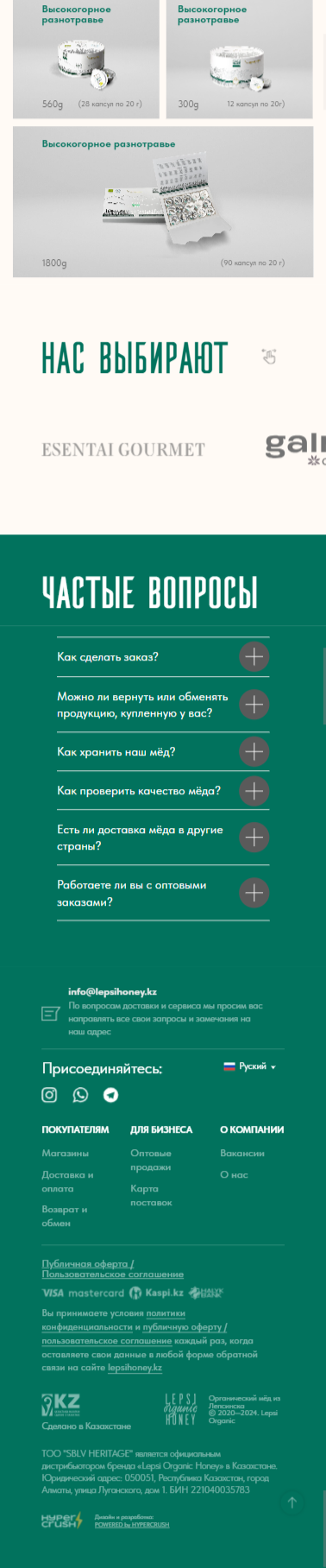 Наша задача заключалась в создании интернет-магазина с возможностью онлайн оплаты, который не только демонстрирует Лепсинский мёд с наилучшей стороны, но и рассказывает его историю. Важно было, чтобы каждый, находясь у себя дома, мог без проблем купить мёд и ознакомиться с полным ассортиментом.